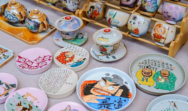而【乐天陶社创意市集】的具体位置则是在景德镇雕塑瓷厂内部,市集的摊位主基本上都是景德镇当地的艺术家、设计师,配以围绕集市一圈的文创店铺,打造出这片文艺青年汇集的圣地;整个集市以销售瓷器器物为主,各种原创瓷器都非常好看,最赞的是重复率很低,一路走来基本上没有看见重复的产品。