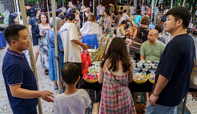 集市内也有售卖首饰、挎包、布袋等周边产品,旁边还有几家饮品摊店可以休息,以及陶瓷厂内的一些个性店铺,都可以慢慢挑选,实测这边的人都很“躺”,并不会一直给你推销也不会干涉你拍摄或观赏,一圈逛下来可以说是非常的赞了~