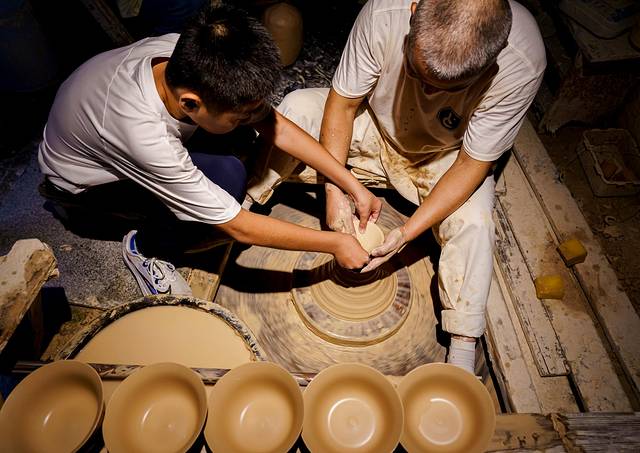 顾名思义,“古窑”景区的核心玩法就是打卡众多的古窑井,如今的古窑不仅有世界上最古老的制瓷生产作业线,还有保存完好且依旧在正常使用的清代镇窑、明代葫芦窑、元代馒头窑、宋代龙窑等,大家可以走到门口去观赏古窑内部,也可以亲手体验制作瓷器的过程,比如用泥做胚胎、给瓷器上色、用笔画图案等等,对于游客来说也算是很有趣的沉浸式体验了。
