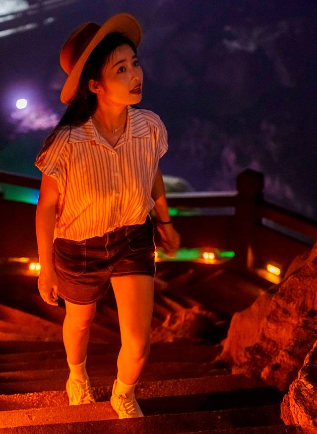 洪岩仙境的溶洞规模不小,大家从正门进来之后沿着步道一直前行,大概需要走1.5小时左右才能走完全程,中途会看到各种震撼的钟乳石,甚至还有一条地下瀑布,大家可以近距离观看山腹之中的三叠瀑布,十分震撼。