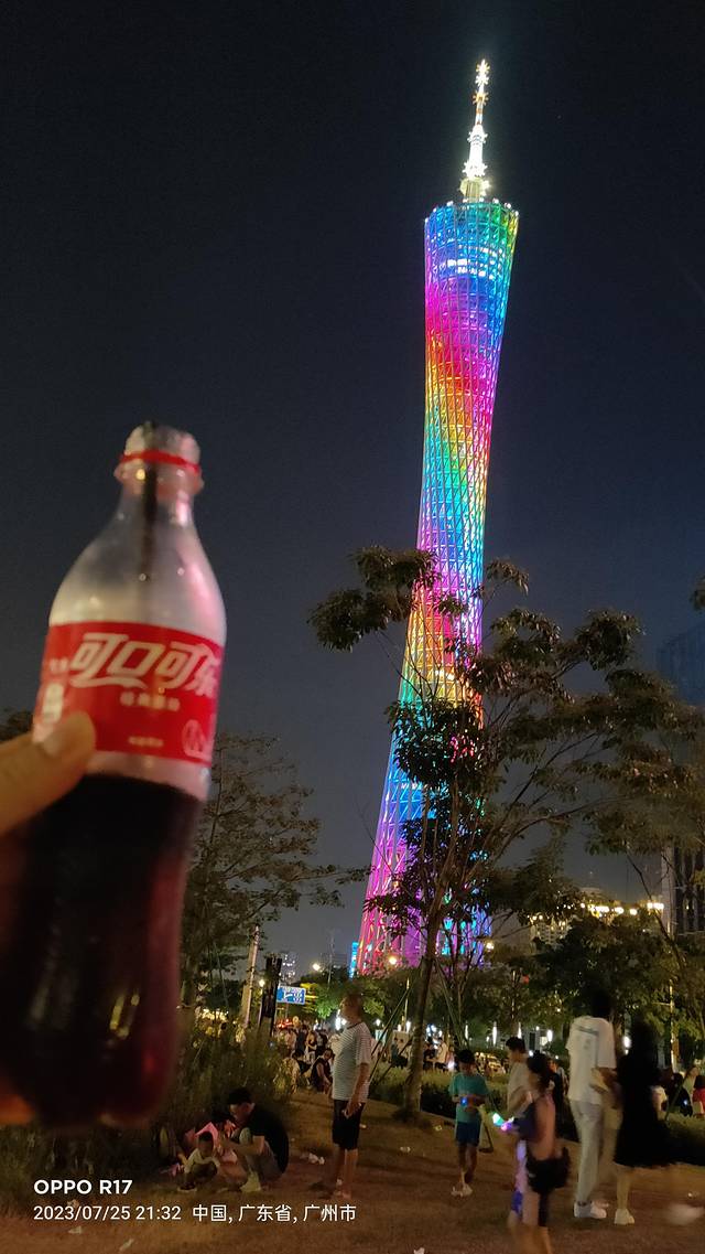 广州的夜景,是迷人的,再配上冰可乐,是真的不错。