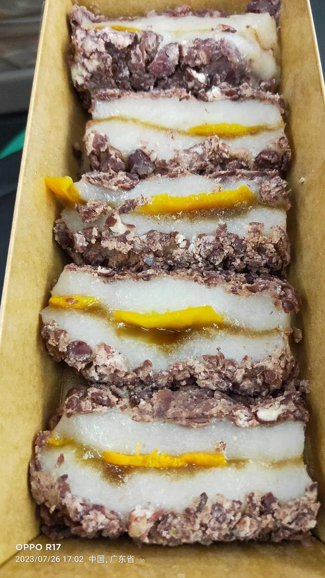 在上下九,有一家卖糯米糕的店,回购几次了,这一次只买了红豆糯米糕。超好吃!带回家。