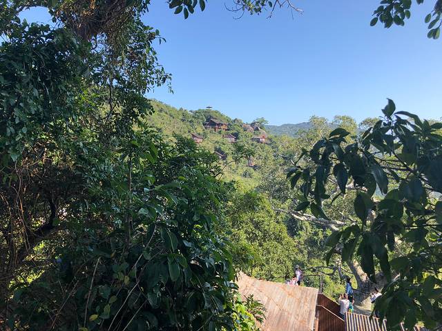热带雨林中藤萝密布、溪水潺潺,百花争艳,彩蝶纷飞。山顶可以看到极具特色的鸟巢酒店,傍晚时分天边一抹夕阳给生活增添了无限色彩。