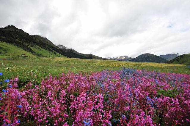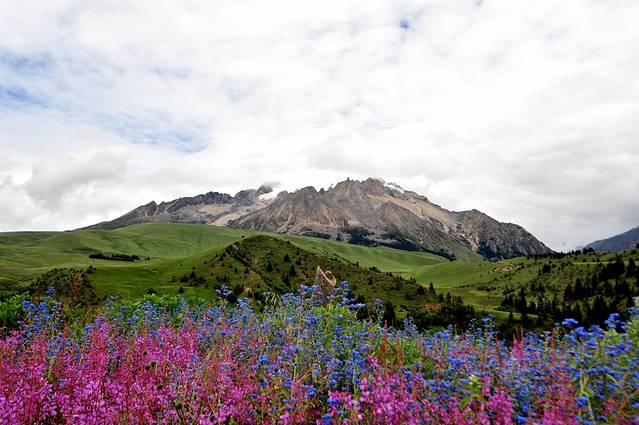 去过川西好几次了,但每一次到甘孜都是匆匆忙忙,最远就到过墨石公园,新都桥的秋色也未能尽收眼底。听说格聂南线的风景绝美,此刻野花正艳,我们很神往。好不容易待娃放暑假了,却看天气预报每天都有雨,推迟了十天,预报依然天天是雨,听说川西的气候雨少、一般不会连续下,我们还是依计划出行了。