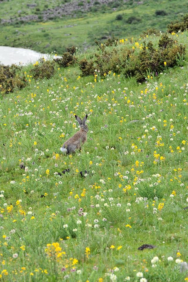 野兔跑得很快,镜头还没捕捉到,就跑远了。