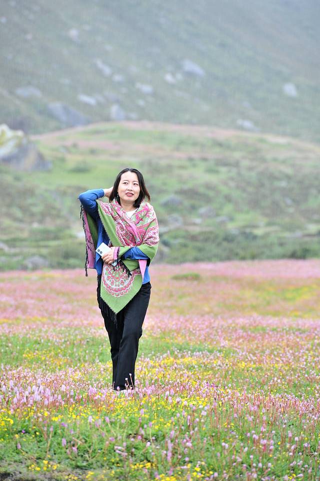 九点从巴塘出发,穿过波密乡的云雾,颠过十几公里的非铺装炮弹路,惊艳于查冲西村的草甸花海。经过格聂之眼也因雨太大没去,下午两点到达下则通村(丁真的家乡),找到家民宿等雨停,民宿里只有三个孩子在家(最大的孩子才上五年级),孩子们热情邀请我们进屋烤火,老板夫妻不在家,趁着雨天上山捡菌子去了。虽然错过了前一天的好天气,但期待明天天晴。第一感觉,这边的花比毛垭大草原更为浓烈,颜色更多,查冲西村的蓝和紫即使在雨中也很惊艳,但因为雨中赶路兼第一次走这里,以为前面也是如此景色,便没有拍下照片,深感遗憾!