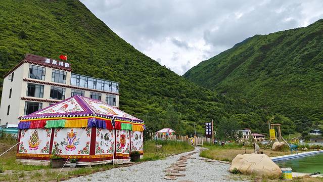 早餐吃了点干粮,继续往前。9:30从麦巴村出发,到新都桥镇大概18公里的路程,又开始堵上了。12:00才到达新都桥加油站,加好油出来,在路边的川菜馆吃午饭,点了鱼香肉丝+土豆丝,3人合计75。两点半到达雅江尚早,我们准备到理塘住宿,一路之上,手机信号很差。雅江到理塘段车较少,我们走走停停。18:00到理塘了,因为县城海拔大概是4014,我们也不敢剧烈运动,就在酒店旁边吃了牦牛汤锅就直接回房间休息了。