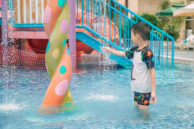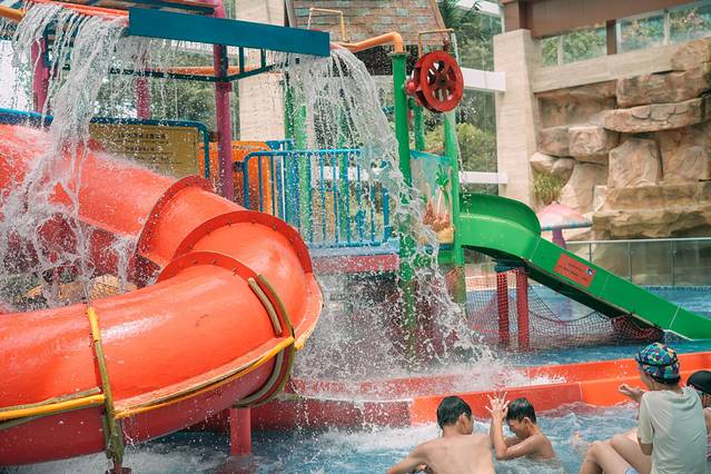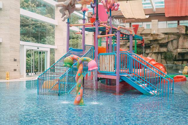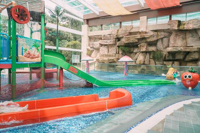 超大的水乐园,室内和室外好几个泳池,天晴下雨都可以玩水,包含1m浅水区及1.7m深水区的恒温泳池,还有趣味儿童水寨、热汤池!