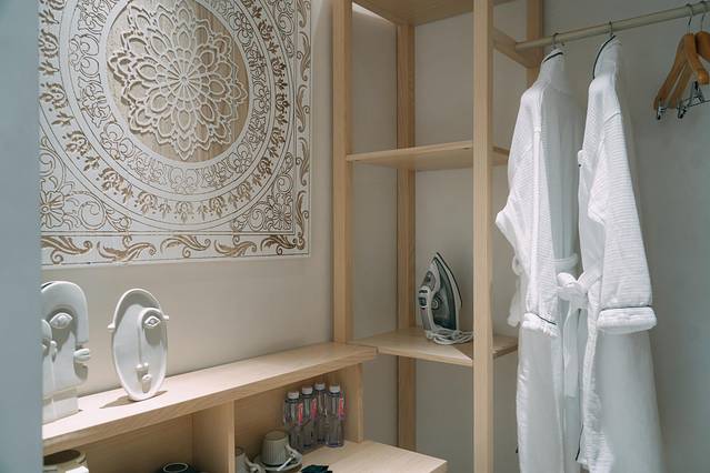 房间里还贴心地准备了驱蚊水,浴袍,熨衣板,这无微不至的细节,考虑到了每一位入住客人的需求。