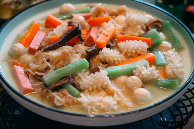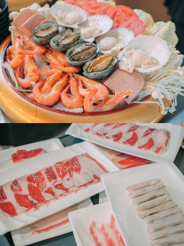 我们吃的泰式火锅,餐厅里放着音乐,听着歌,吃着火锅可太舒服了!满满一份海鲜拼盘配着冬阴功的汤底,真的超级开胃,配上酸辣的蘸碟真的好好吃~