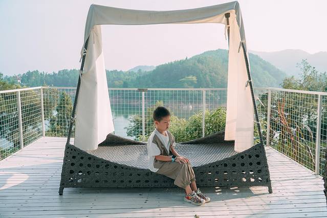 酒店临湖而建,环绕于高山绿水地与湖泊之中,有一种山间别墅的感觉,室外的湖景☕️咖啡厅,星月见山观景台,视野很不错,很多拍照打卡点,喝茶、拍照、聊天齐活了。