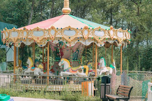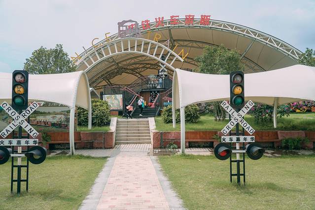 门口的欢乐火车非常值得体验一下,是真实的绿皮火车哟,火车会绕着乐园开一圈,可以欣赏到整个乐园的风景,整点发车的,想坐的话最好提前问一下开车时间。