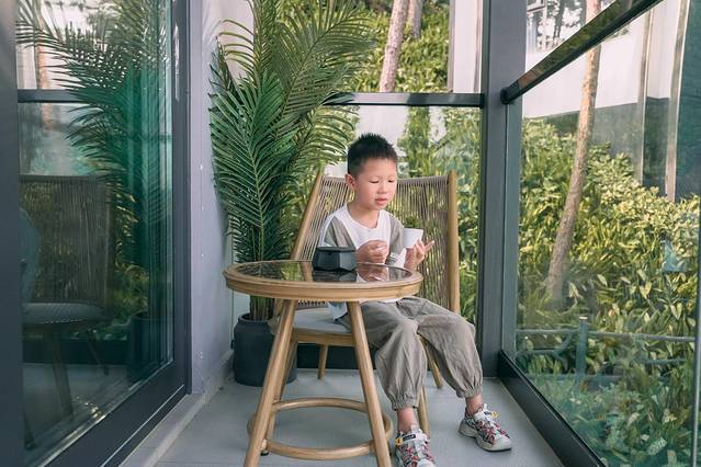 我们住的是亲子套房,空间真的很大,特别适合全家出游,简约的装修风格很喜欢,全屋智能操控,细节挺不错,从装修摆件再到床品都超有品!