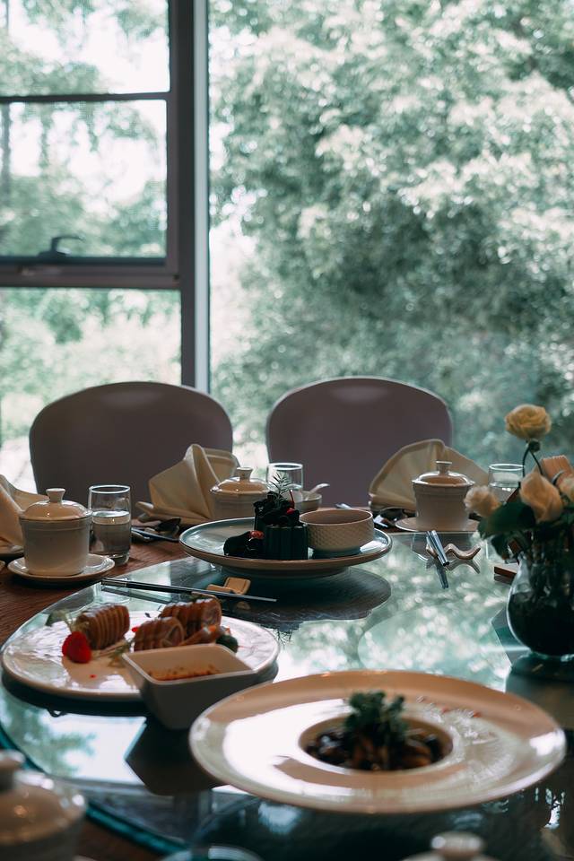 我们提前定了包间,超大的落地窗外面一片绿色,让人心情愉悦。