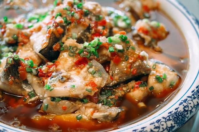 特色翘壳鱼:必点,这个鱼可谓是湖鱼中的扛把子,一年产量不高非常稀缺珍贵,淋满酱汁的鱼肉质鲜嫩,没有半点腥味,吃过一次念念不忘的鲜美!