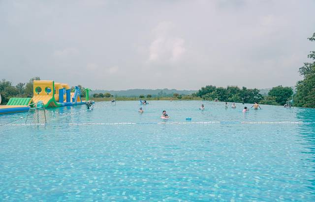 无边泳池真的太大了,确实是震撼到我了,没几个酒店能有这么大,泳池边际与无尽山水遥相辉映,碧波万顷,水天一色,鸟巢,泳池随便来一张照片都能够称霸朋友圈!还可以租各种造型的游泳圈,手摇船和香蕉船来拍照,非常出片。