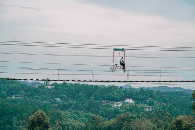 天空自行车:骑着自行车的从空中的绳索上通过,看着吓人的,实际上还好,恐高的慎选。