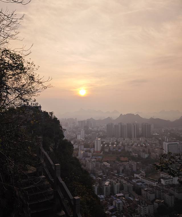 🎡马鞍山公园免门票,柳州看日出日落的圣地,可以俯瞰柳州全城,19点统一亮灯,爬山20多分钟,电梯上20块,下10块,日出和日落,我们选择了日出,放弃了日落和夜景,结果日常看了个寂寞,平平无奇的一场日出。