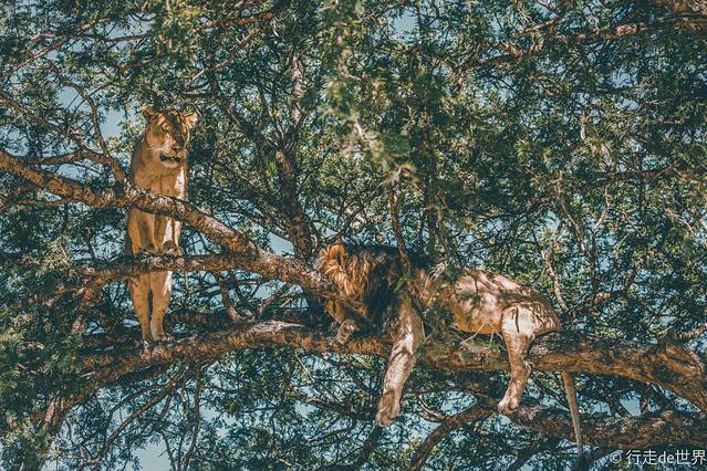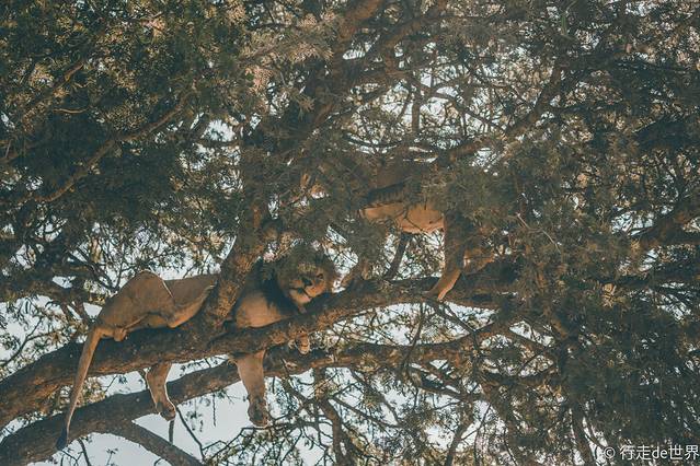这对 狮子 是在我们行进的途中偶遇的,一棵 大树 刚好就在道路的上方,所以 狮子 其实是在头顶几米的地方。