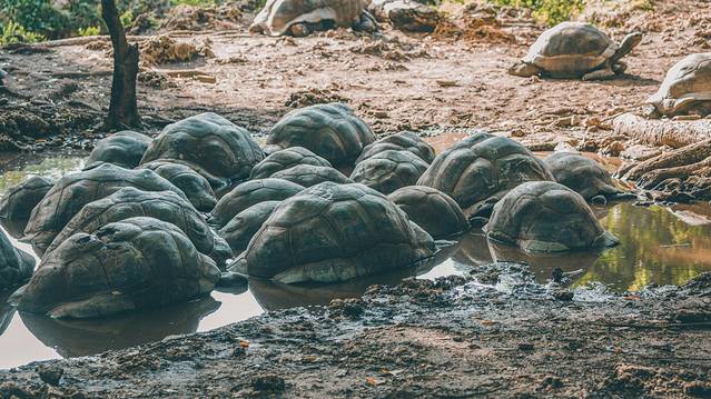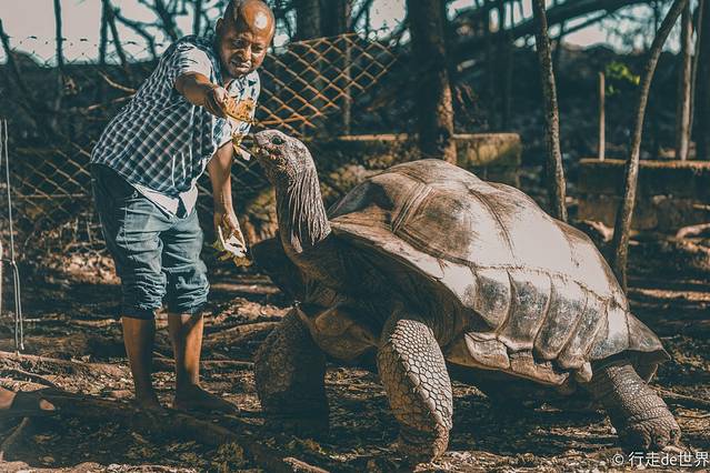 岛上有各种不同的动物在此栖息,不过最耀眼的还是世界上体型最大的陆地贵:象龟,其粗壮的四肢和高高的龟甲甚是壮观,象龟也是 长寿 的代名词,据说这里年龄最长的一只象龟已经198岁。
