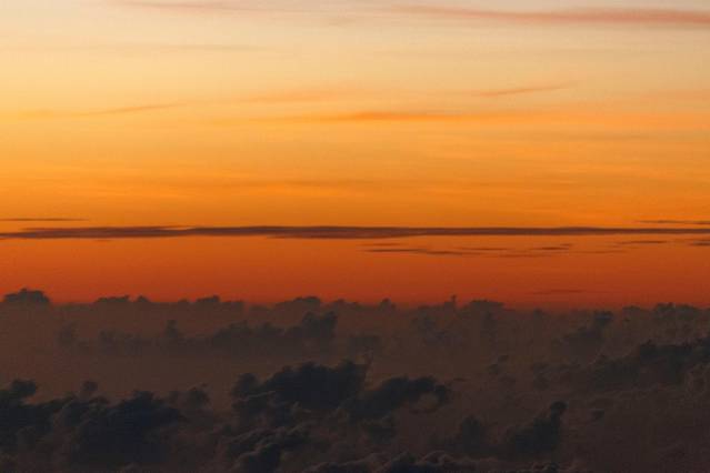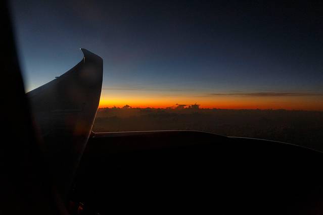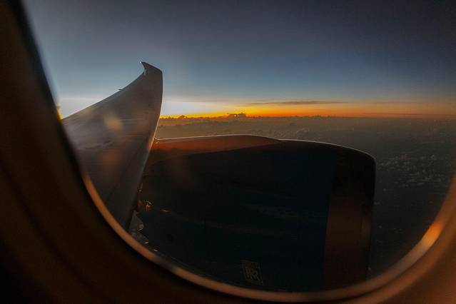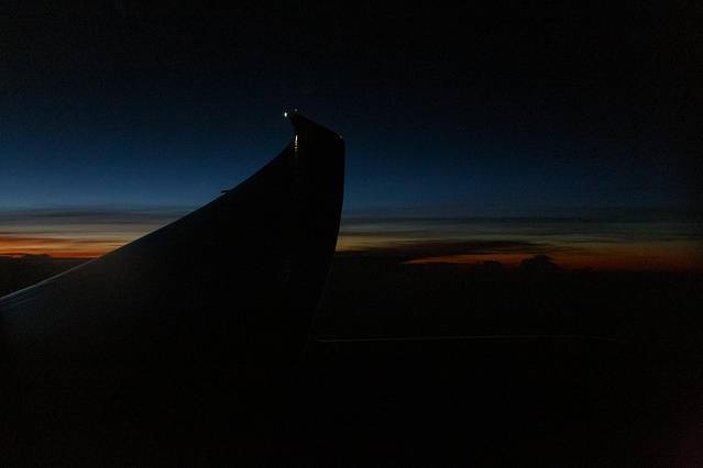 经过一夜的漫长飞行,生物钟在此刻发挥了重要的作用。醒来的第一时间推开舷窗,映入眼帘的是一个让人惊艳的朝霞时刻。在城市里生活的太久,好像已经很久没有看到如此精彩的画面。