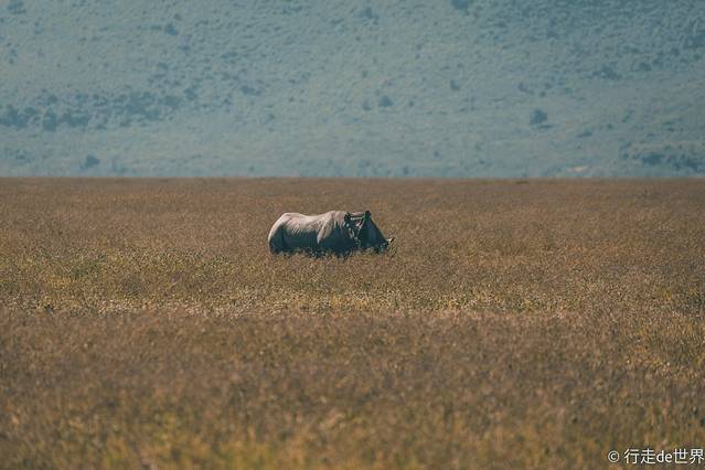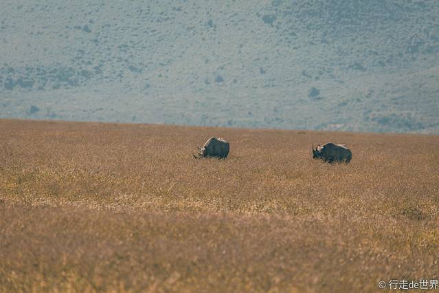 听向导讲,要在火山口看到黑犀牛也是非常不容易的,好在这一次我们真的是非常幸运,远处的草地里有几只黑犀牛在吃草。可是,就算是拼尽了全力,用了焦段最长的镜头也没有办法看到清晰的画面,为了让动物不被打扰我们只能远远地用心去感受。