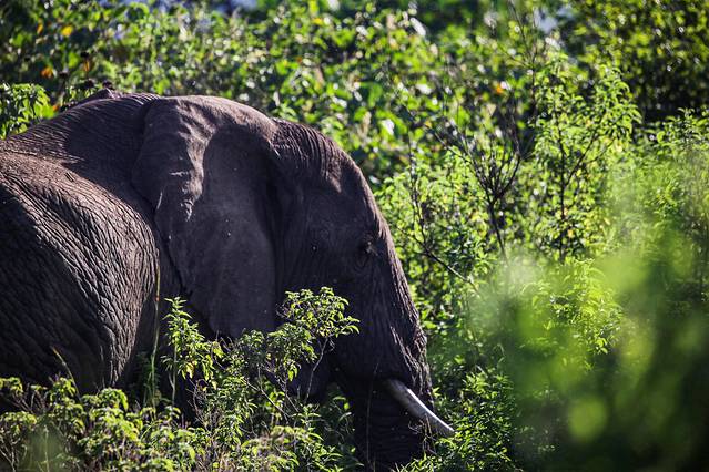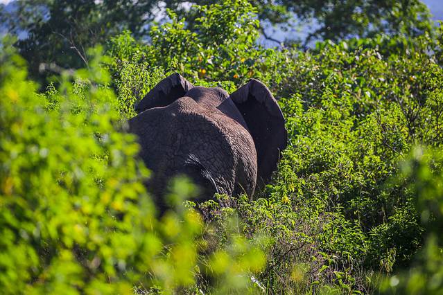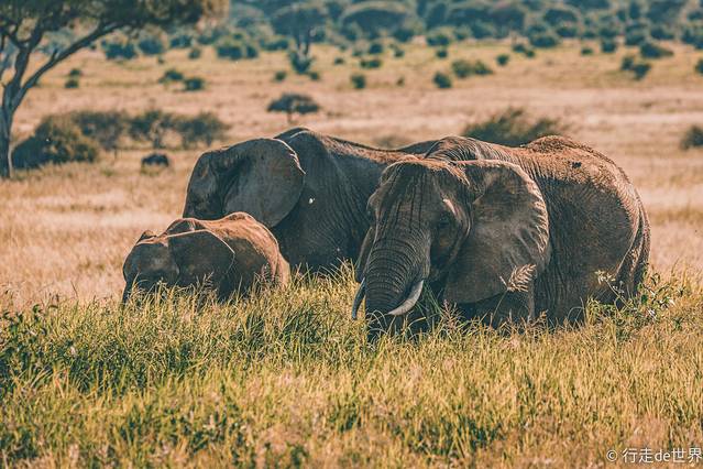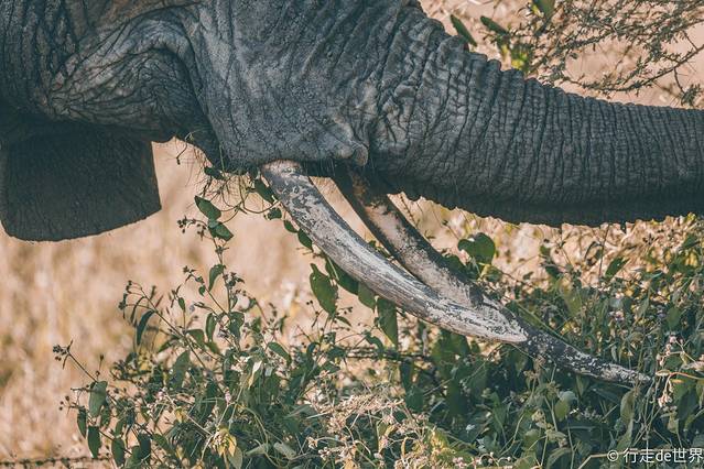 阿鲁沙国家公园距离市区大约1小时左右的车程,刚刚走近国家公园不久向导就示意大家不要出声,还没有完全反应过来的时候,就看着几头大象朝着车的方向慢慢走来,转身又走进了旁边的树林当中,一转眼的时间留给我们的就只有那个庞大身躯的背影。