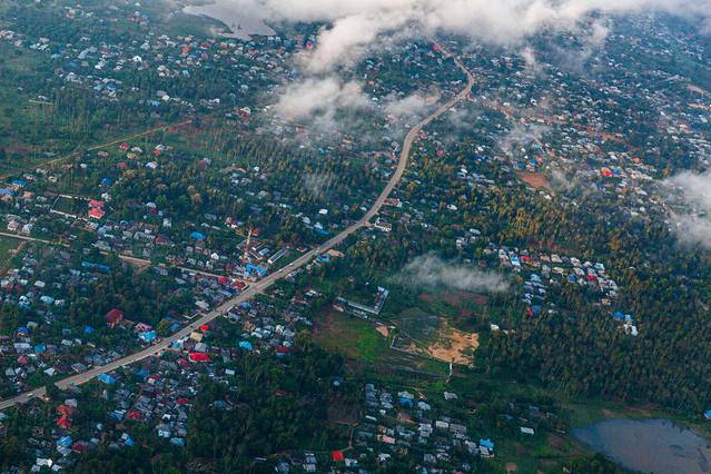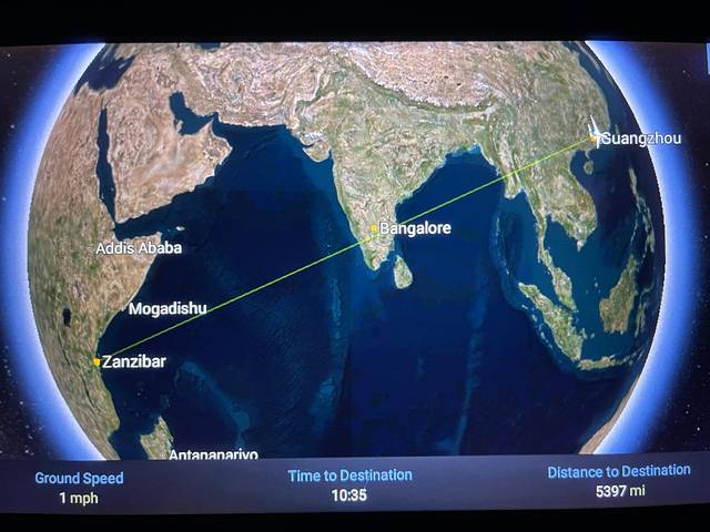 经过一路不断变化的空中美景之后,机上广播提示飞机即将到达本次行程的第一站: 桑给巴尔岛 。飞机外的景色也开始变得更加多元化,渐渐地出现了陆地的模样和城市的车水马龙。