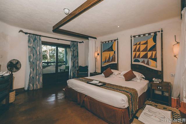 每个酒店房间的门头上方都会有一簇鲜艳盛开的花,这是对这家酒店的最深刻的印象。离开公路就是一段很长的沙土路通往酒店,周围是大片的灌木树丛,酒店就是掩映在这样的一个环境当中。