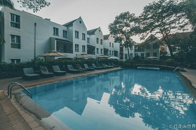 酒店自带的露台阳光很好,推开窗就可以欣赏到不同的自然风光,阳台下面还有一个泳池,在天气非常炎热的时候好想跳下去享受一下。