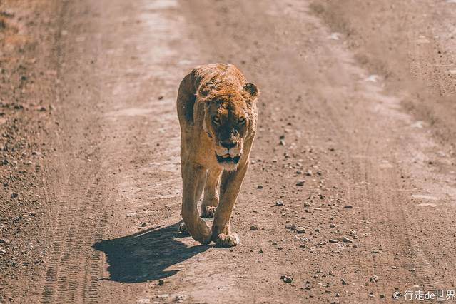 乘车继续寻找拍摄对象的时候,向导示意远处有一只 狮子 正在向我们走来,等到走近的时候所有人都屏住呼吸不敢出声,静静地看着它从我们的身边走过。据向导介绍,这只 狮子 应该在刚刚不久经历过一场激烈的战斗,独身一人的它就算是回到了狮群也可能不被接纳,它的未来可能会变得很可怜。