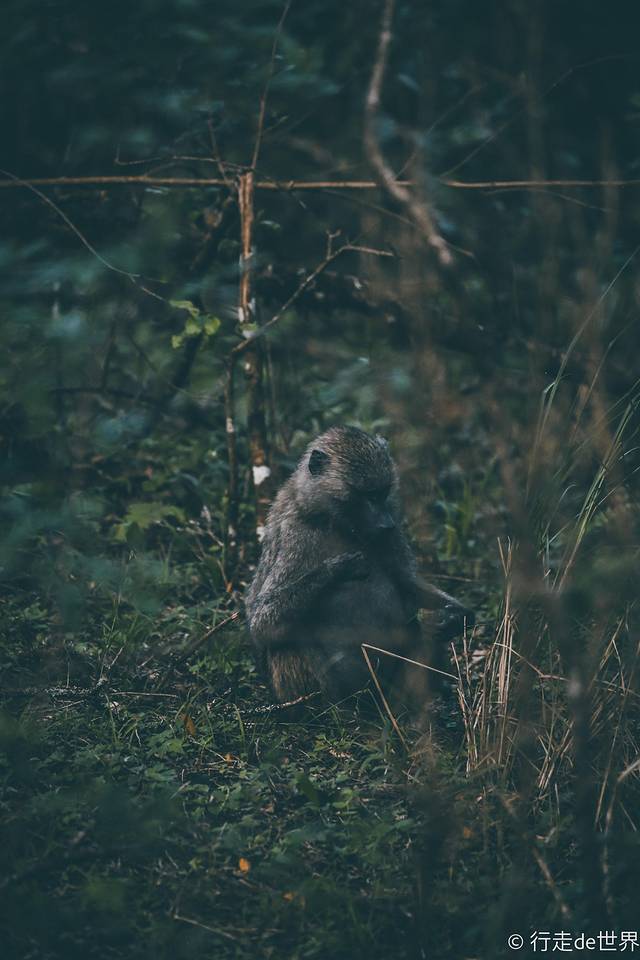 一群狒狒从车的左边跨过路面径直走向了车的右边,一只朝着树林深处走去,偶尔会有几只慢下脚步稍作停留。生活在这里的动物都是很随性的状态,毕竟这才是它们的固有家园嘛!