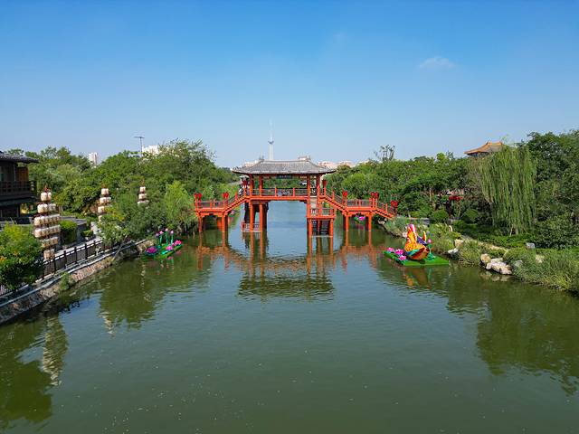在园中游玩时还能看到~包公巡汴河”、"王员外嫁女儿’、“岳飞沙场点兵”、“斗鸡比赛”、“踩高跷”、“蹴鞠比赛”等一系列具有北宋特色的故事场景演出和民俗表演。