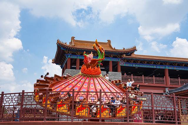 它的羽翼,渐渐远去杳无踪迹。“凤舞九天”飞天转盘游乐项目,不仅外观精美,而且体验感极强!40人座的游乐设备,座舱在360°公转的同时叉有规律的偏心旋转,让游客拥有如凤凰飞翔般的非凡体验。
