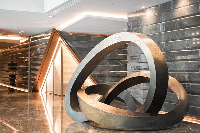 一进入酒店,就被酒店的设计及装饰品所吸引,大量线条的运用,极具几何空间美学的美感,艺术装饰品也是别致的曲线装置,呈现出独具一格的铂尔曼格调,进门处还设有休息区,让宾客在进门时就感受到酒店雅致的环境及氛围。