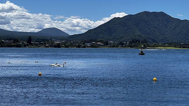 最佳观湖点是个皮划艇训练码头,虽然看不到富士山,但是水面最开阔,还有天鹅作伴