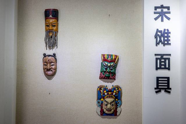 一间平房改造的傩文化馆里,展示了不少“宝贝”。