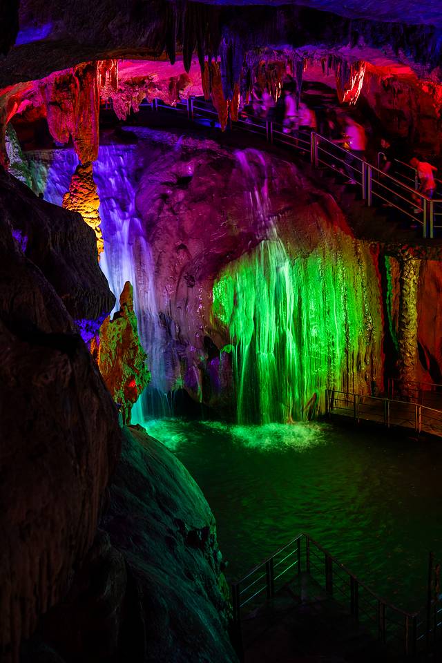 孽龙洞全长3200米,有108处景点,分布在南斗六宫九重天。