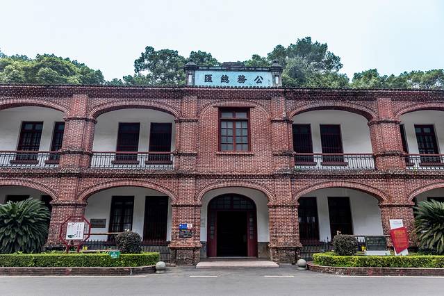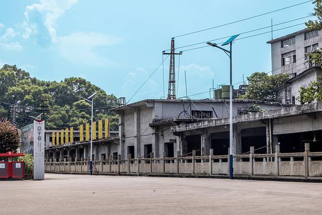 总平巷——安源煤矿井口,位于萍乡城东面六公里处的安源镇境内,坐南朝北,呈牌坊形。总平巷是安源煤矿工人上下班以及煤炭输出的总巷道。总平巷内分东平巷、西平巷。因地面平坦,所以称为总平巷。总平巷是用红砖砌成的,井口上方塑有铁锤岩尖图案和“总平巷”三个醒目大字,岩尖代表采煤工人,铁锤代表机械工人。