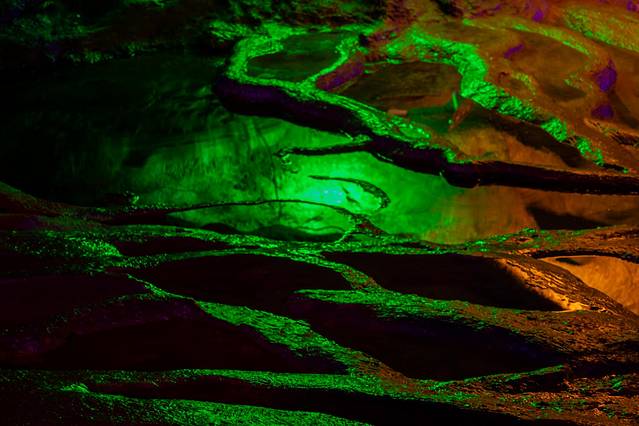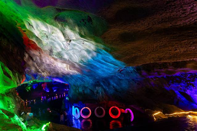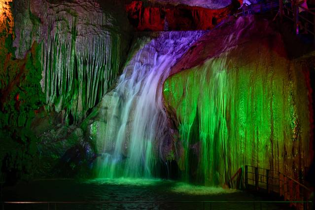 进入洞中,即可欣赏石笋、石花、石幔,晶莹剔透,湿润如玉,令人大开眼界!