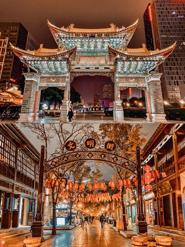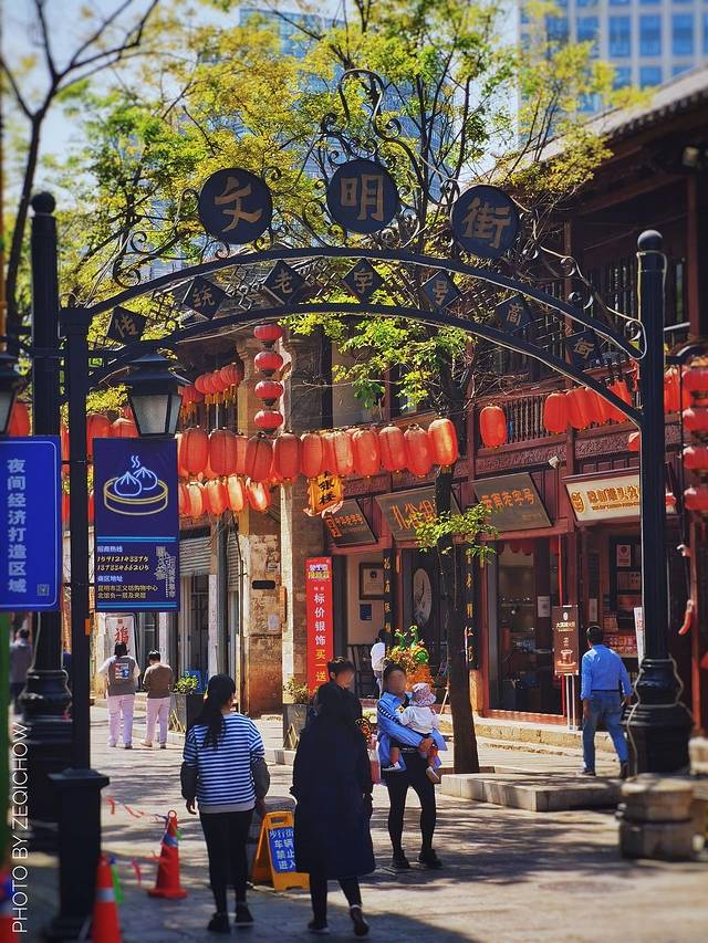 昆明老街主要分布于光华街、景星街、文庙直街、钱王街、文明街……数条老街小巷阡陌交错。在昆明老街的建筑群落里,它的每栋建筑一砖一瓦都写满了故事,承载着这座城市的记忆,同时也承载了昆明人的童年回忆。