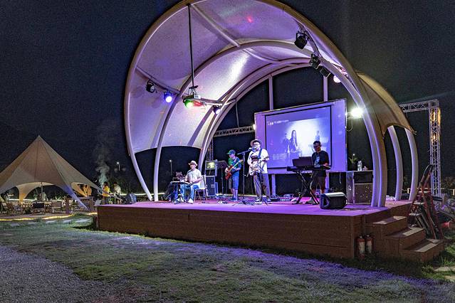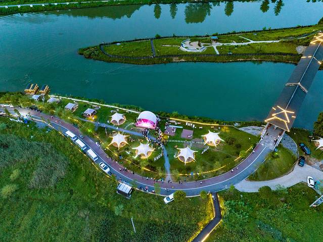 在江口村露营公园的中,坐在天幕帐篷里,露营、烧烤、野餐,与三五好友江畔赏景聊天。夜幕降临之后,还有乐队在这里表演驻场,让青春的快乐在此肆意释放!