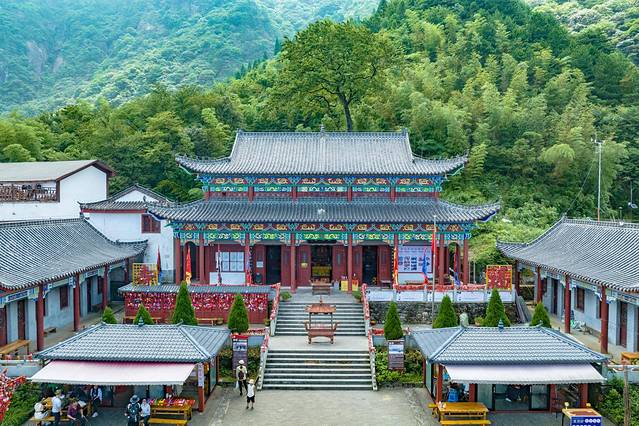 乘坐一级索道上山后,便能看到索道站旁边的紫极宫,也就是"中庵"。如果步行上山,沿途有尽心桥、尽心瀑 母子岩等景观。