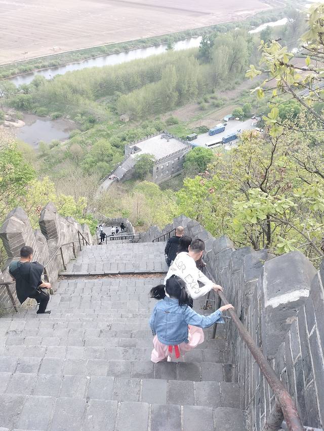 虎山长城是中国长城最东端,在长城可以望见朝鲜,中段台阶较陡,整个游玩过程约两小时,封顶需要攀爬比较陡峭的部分,那块真的是垂直的陡峭,但是总体不算难,慢慢走,边看风景边休息,很快就走到顶,下山可以坐景区接驳车或徒步自行回到出口。我家孩子全程都是自己上下,就连我都觉得腿有时会抖呢,为宝贝点赞。