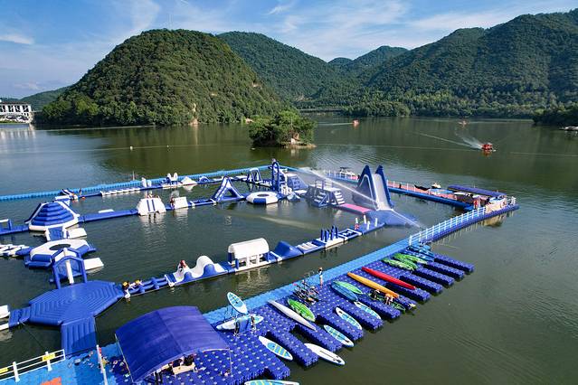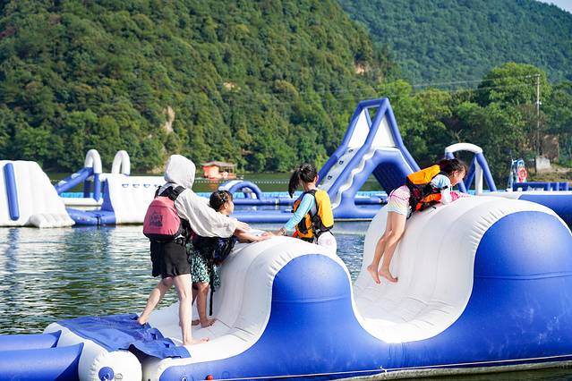 从杭州出发,只需1.5小时左右,即可来到这个青山绿水中的湖心岛造浪乐园,虽然现在很多地方都有类似的水上乐园,但是这个今年夏天新开业的湖心岛造浪乐园依旧可以说是独一无二的存在,也是景区内必打卡的地方。