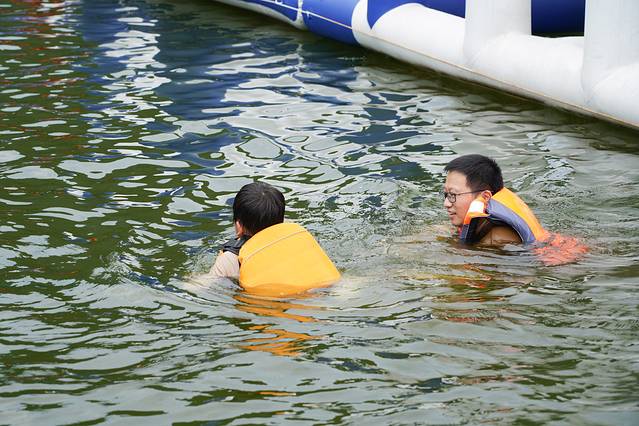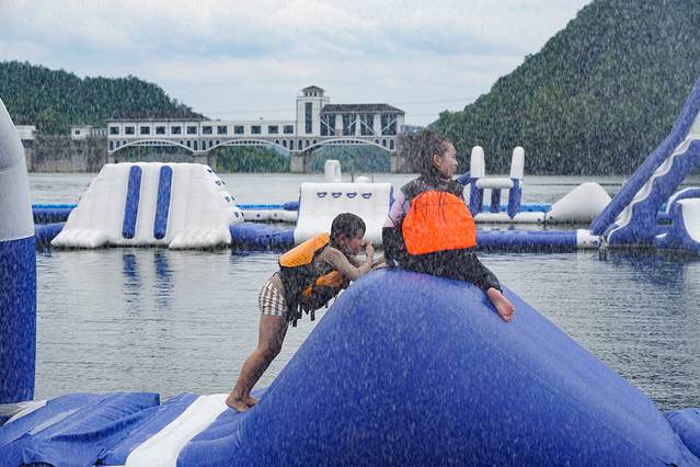 不过这恰恰是这里的乐趣所在,人们并非是为了达到某种目的的“竞技”,而是乐在其中的休闲与度假,因此无论是闯关成功的威风八面,还是掉进水里的丑态百出,大家的脸上都洋溢着欢乐的笑容。
