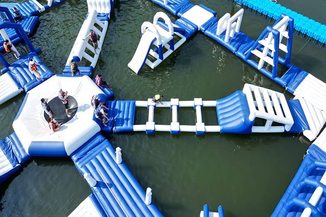 很多人觉得不就是一个游乐设施嘛,难度应该不会太高。其实也不能这么说,因为整个装置是由气垫组成,又是放在水上,这两者结合在一起能有多“站不稳”,大家可以自行想象一下,很难在这里快速移动,需要时时刻刻保持平衡。