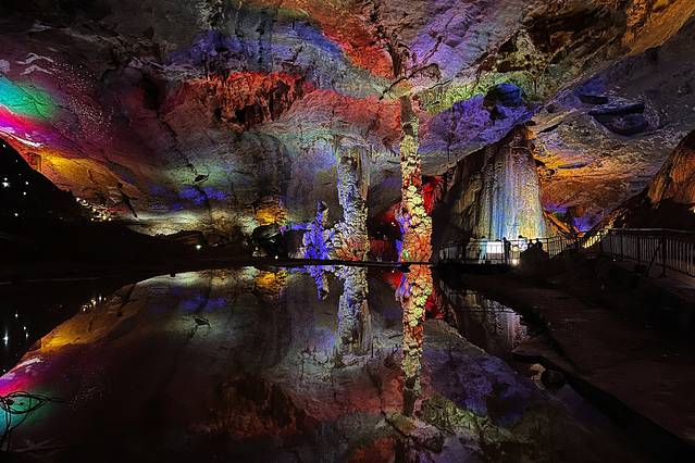要是室外呆久了,还可以去九霄碧云洞呆呆,这同样也是景区内的核心景点之一,拥有各式各样的溶洞奇观:其中洞内最大的面积2.8万平方米,净空最高处24米,被誉为“亚太第一大洞厅”;除了面积较大之外,洞中最大的钟乳石“擎天玉柱”高达20多米,也是十分罕见,游人可乘坐地轨式观光缆车直达洞口,这是浙江省内首条地轨式观光缆车哦!方便快捷,溶洞有多凉快就不用我说了吧,绝对的避暑好去处。