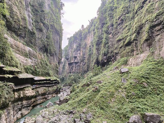 早上从奉节出发,导航至恩施大峡谷的沐抚镇,这个镇离大峡谷景区的游客中心只有几公里。一路穿行在喀斯特地貌地缝中,特别是从奉节县城出发到小寨天坑这段路,景观不亚于大峡谷和天坑景区,正所谓最美的风景在路上。(小寨天坑不知道什么原因已经关闭了,不知道以后还会不会开放)一路边开边耍,中午十二点过到达沐抚镇吃午饭,然后入住大峡谷景区索道下站附近的酒店。睡个午觉,大约三点过,出发去游览地缝景区。需要先去游客中心买票,然后乘坐地面缆车到索道下站,从这里分流,分别乘坐索道或大巴去往七星寨景区,或者直接步行去往云龙河地缝景区。两个景区相当于将一座山分成的上部分和下部分,七星寨圈在山顶,地缝圈在山谷。从索道下站跟着路标进入地缝景区,在峡谷里沿云龙河上方栈道步行约个把小时就到达垂直观光电梯返回地面(当然你也可以选择步行回到地面)。然后你再继续步行个一两公里回到索道下站。再乘坐地面缆车回到游客中心。需要说明的是索道下站有一个小铁门,可以从这里出入,如果酒店住在索道下站附近,就可以不用再去乘坐地面缆车了,直接从这个小铁门出景区回酒店方便得多。