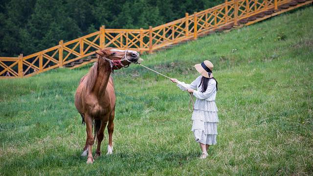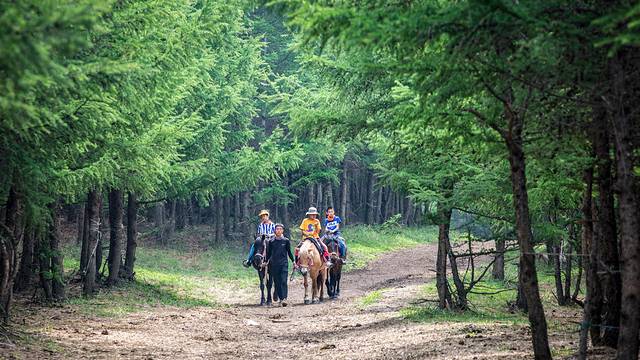 师傅牵着马儿在森林深处绕一圈。马儿很乖比较安全,没骑过可以体验一下,山里信号不好,无法手机支付费用,部分商户只收现金。